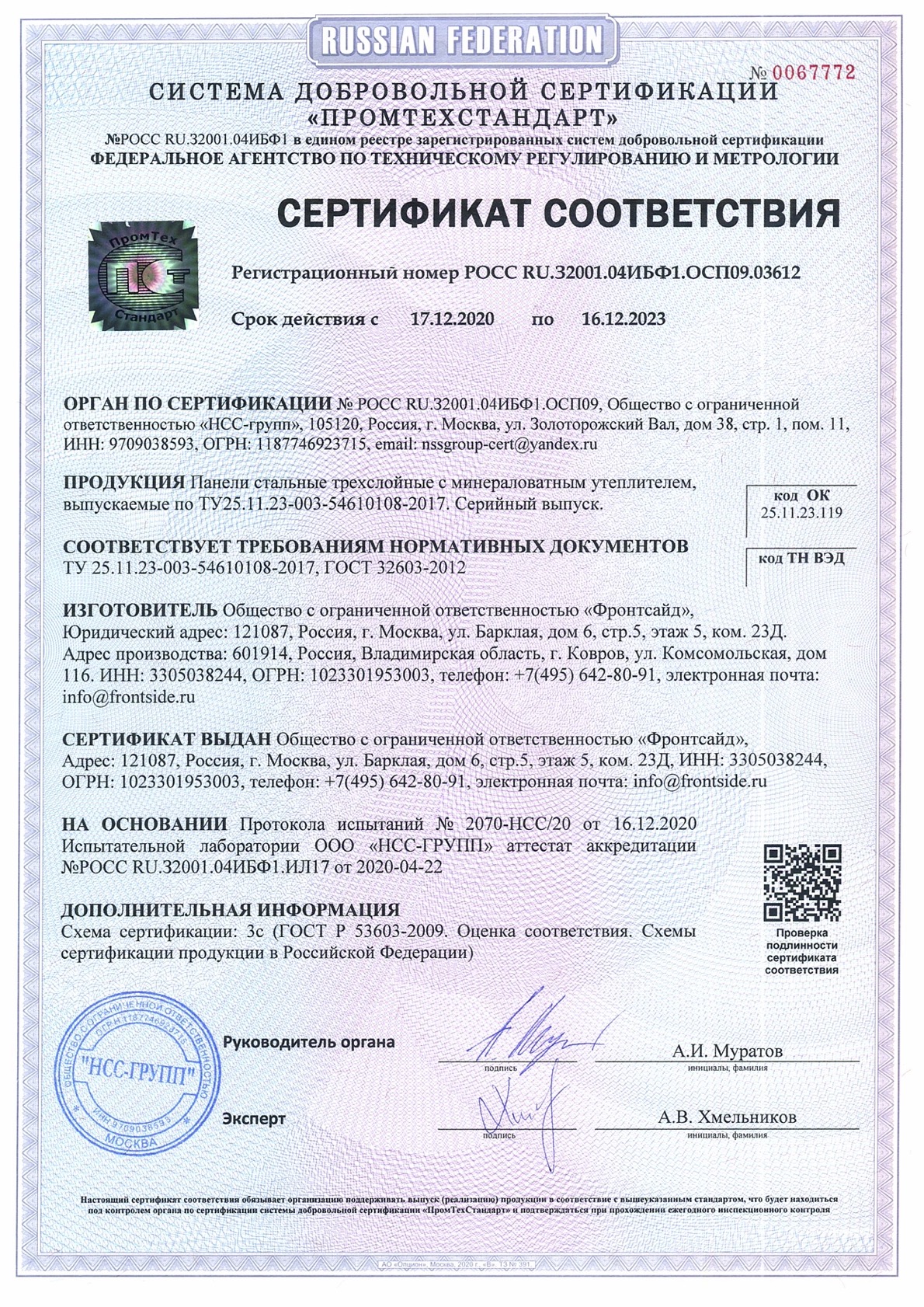 На соответствие российским и европейским стандартам качества, в том числе испытание натурных образцов.